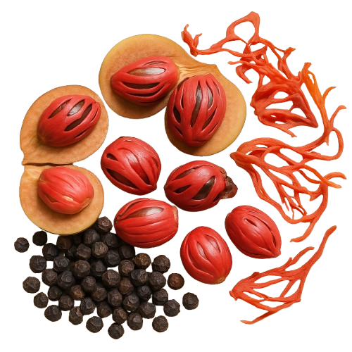 Nutmeg is the seed of the Myristica fragrans tree, offering a warm, nutty, and slightly sweet flavor. Commonly used in baking, holiday treats, and creamy sauces, nutmeg brings a rich, aromatic complexity to both sweet and savory foods.